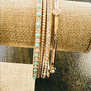 Gold, crystal acrylic bangles . Four piece set .