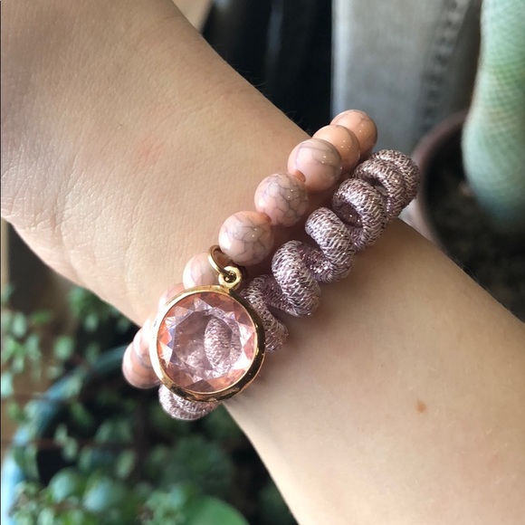 Pink bracelets. On can be used as hair tie.