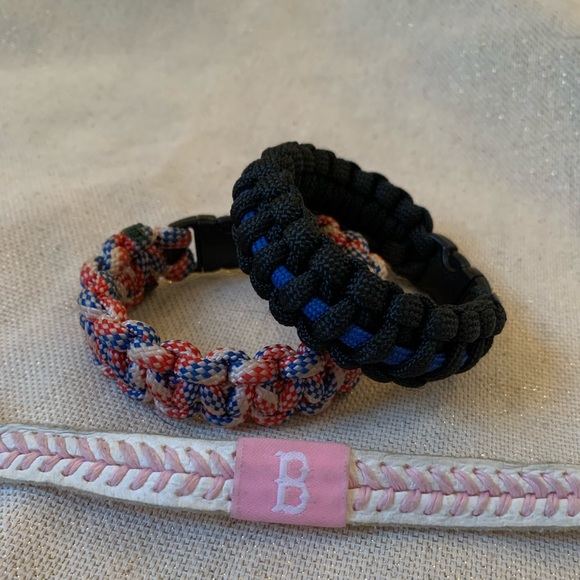 Blue line paracord bracelet-$4 Red white and blue paracord bracelet-$4 Boston baseball piece bracelet-$7 Will bundle for price listed. Or depot are or prices above 😁