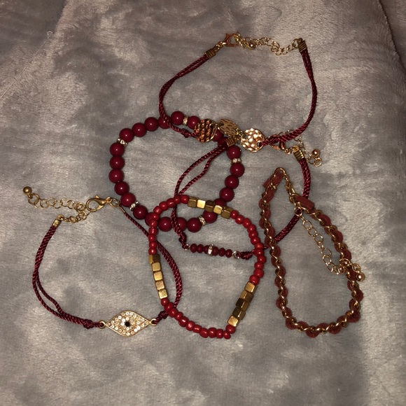 Maroon accented set of 6 bracelets