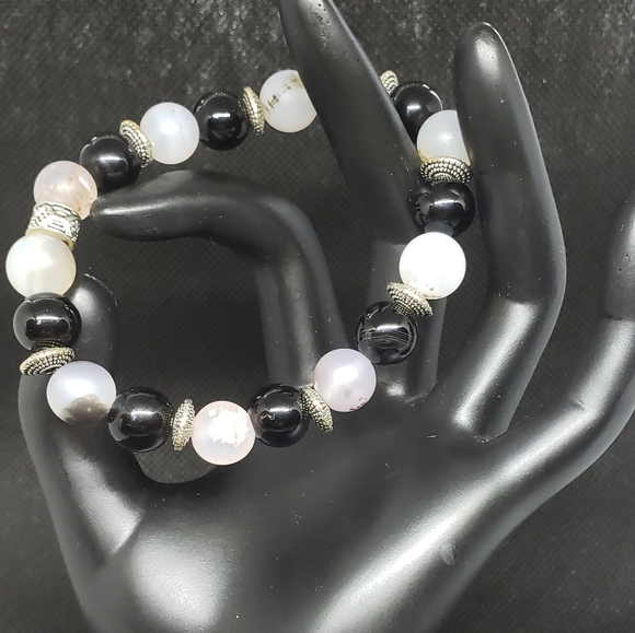 Black and White marbled bracelet with a hint of silver