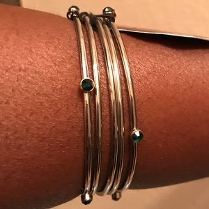 Silver bracelets with green rhinestone