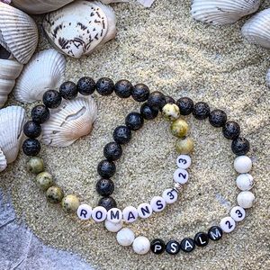 (Price for ONE bracelet) Handmade bracelets with names or bible verse chapters and number.