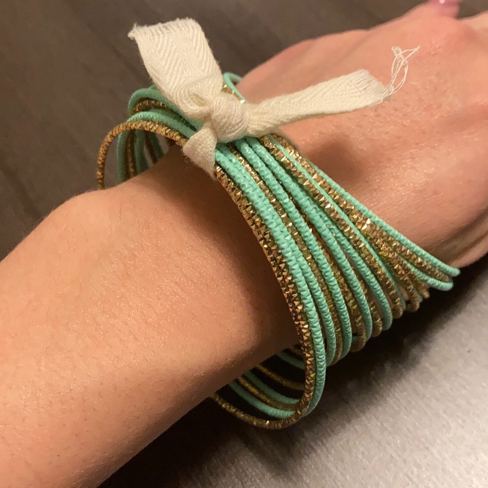 Perfect condition. Seafoam green and gold (not real gold.)