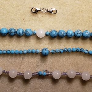 3 in 1 Sterling silver bracelet sets with natural healing stones and swarovski crystals, many options available in copper,stainless steel, Sterling silver, brass or gold when requested. Bracelets are customized to each customer down to the smallest details available in sizes from 6"-10.5". Healing stones range from Obsidian to Howlite. Closures available from toggles, lobster clasp to slip knot.