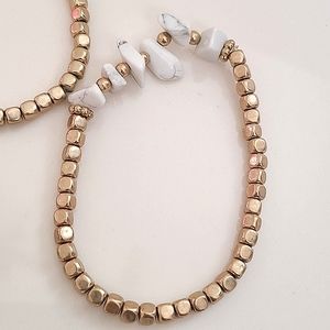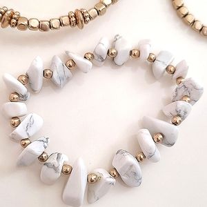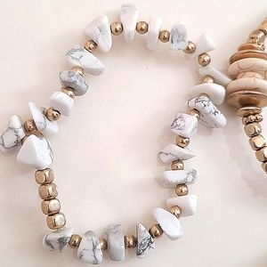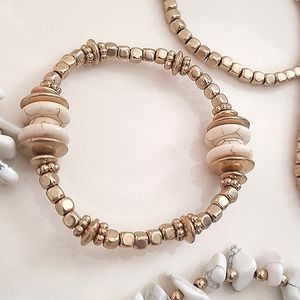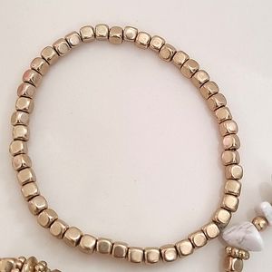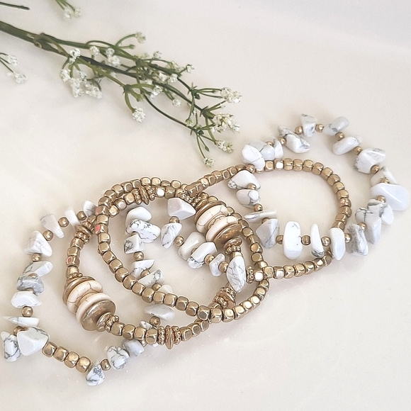 Brand new with tag Charming Charlie 4 stretchable bracelet set. White stones with light gold tone beads. Photos are taken to the best of my abilities so please ask questions prior to purchase. Depending on lighting, color may vary from the photos to the actual item.