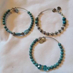 Alex and Ani like bracelets. Set of 3. Turquoise color. Adjustable.