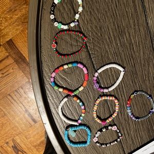 My niece is 10, making these really cool bracelets! 💕🥰She can customize them for you, spell whatever you want. 😇You can put RN, names, or zodiac signs. Pick your colors and just let me. Also, if you prefer silver or gold accents. She has the rubber clay beads and the glass beads. 😊