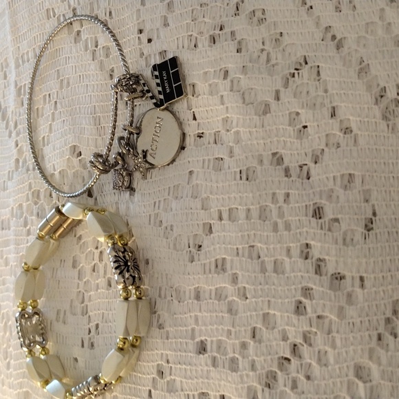 (2) Bracelets Cream/Silver/Gold & Silver Charm