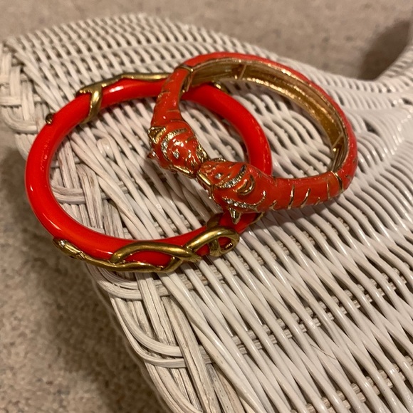 2 orange and gold bracelets Tiger heads bracelet is stretch and the second is a bangle one Ships from smoke free home