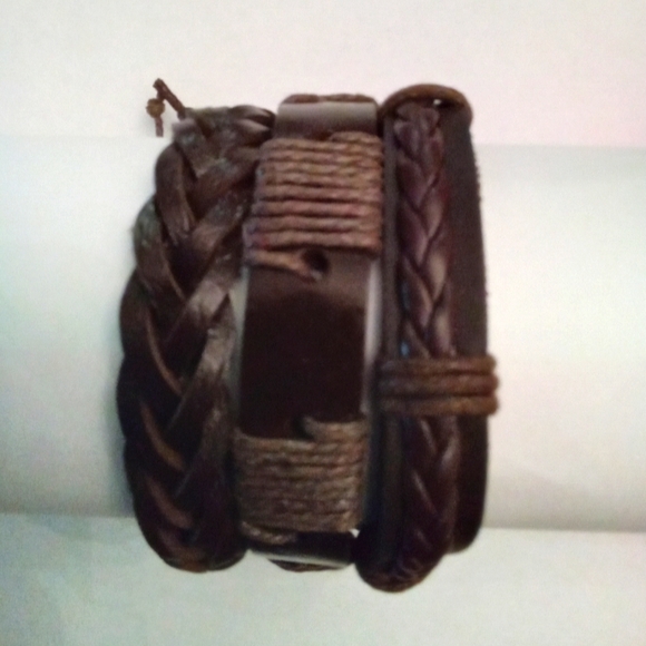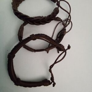 set of 3 soft leather bracelets, slide on n tie no clasps to work with .