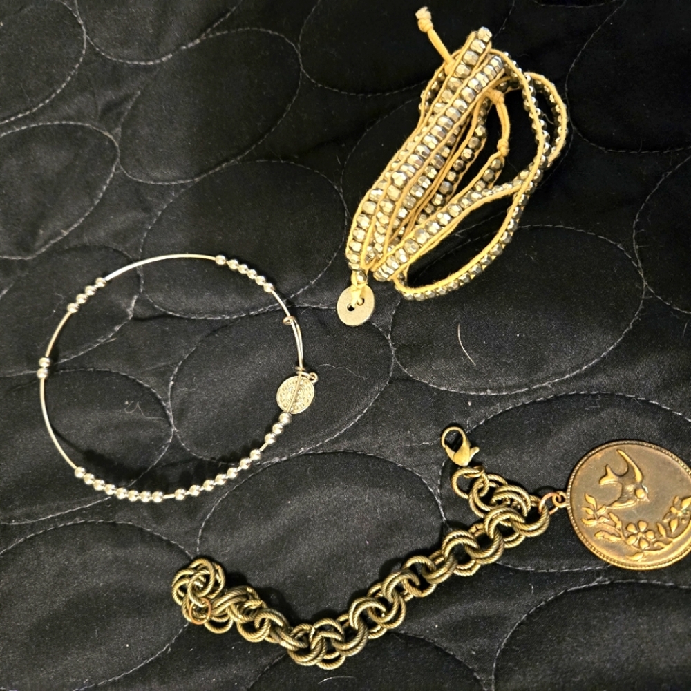 mixed set of bracelets 1 silver wrap bracelets, 1 silver bangle and 1 copper/bronze bracelet