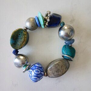 Art Teacher, Hippie, Boho, 1980s, beaded, Treska, Chunky, Costume Jewelry, vintage, cobalt blue, turquoise, Seed Bead