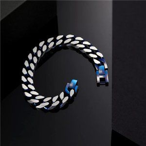 Bracelets for Men-Stainless Steel Fold Over Clasp Cuban Chain Mens Bracelet