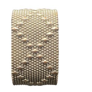 1) cuff approximately 1 3/4” thick with raised diamond pattern, soft metal so easily adjustable