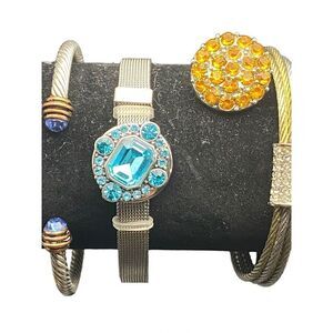 4) magnetic closure wire bracelet with rhinestone accent /has tarnish
