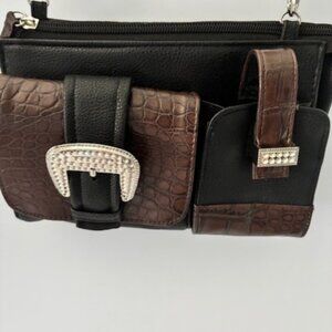 Braciano Black Brown Silver Buckle Bling Compact Modern Classic Statement Chic