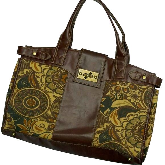 Braciano Large handbag shoulder tote brown floral paisley tapestry pattern