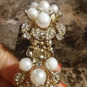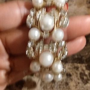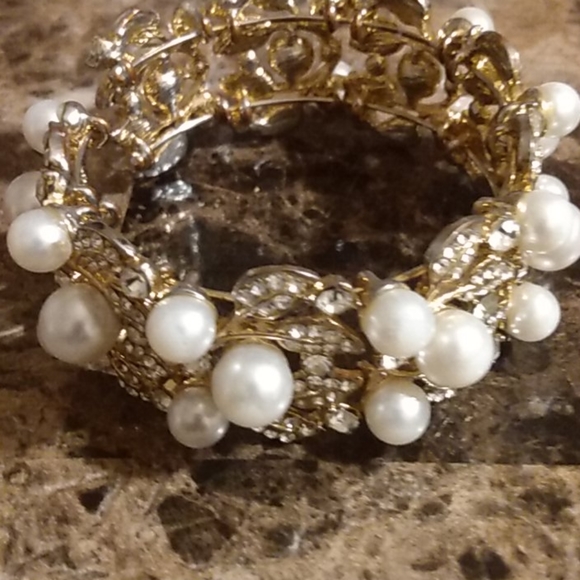 Elegance with cubic zirconia diamonds in between clash of pearls gold bangle