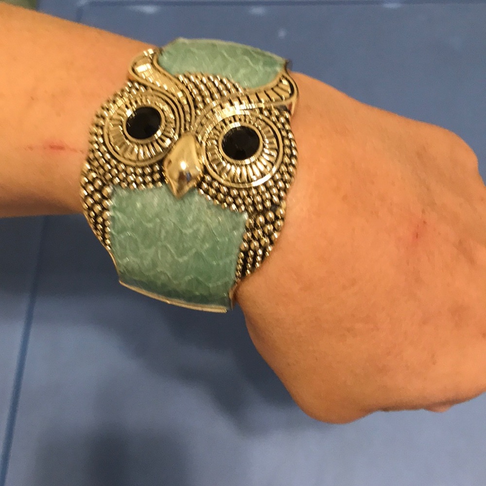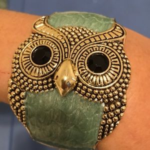 Owl Braclet gold trim black eyes teal pearl color only 10.00 only 2 left