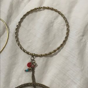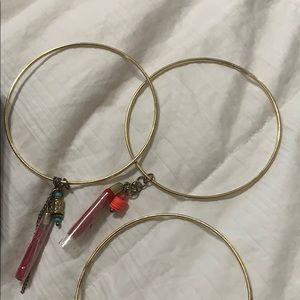 Custom jewelry bracelet set. Has fun bagels on 4/6 bracelets. Gold overlay color
