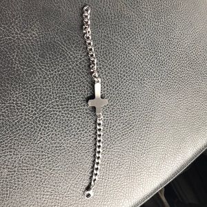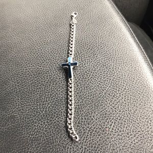 A blue cross bracelet