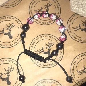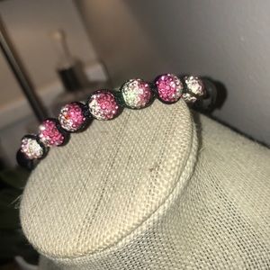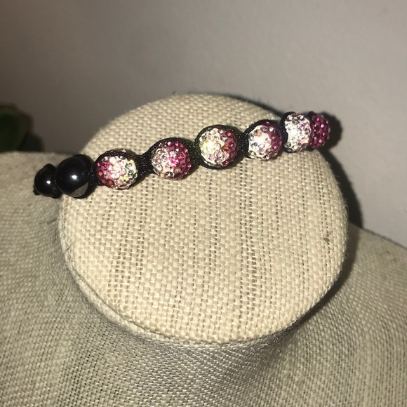 Pink and white Swarovski crystal bracelet Two dark beads on either side Adjustable to fit your hand