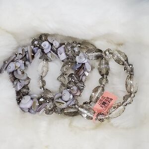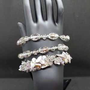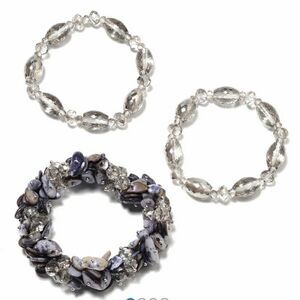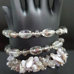 Set of 3 Grey Shell, Bead Stretch Bracelets. Cute and fashionable, wear casual or dressy.