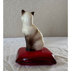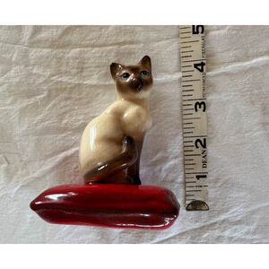 Brad Keeler California Pottery Siamese Cat Kitten on Red Pillow Figurine 4.25"