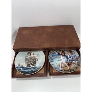 Bradex Seasons Cabinet Plates Cats Friends Etc Porcelain 7.75” Lot Of 7 & Case with drawers. Very nice and rare places #4