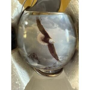 This exquisite trio of ornaments captures the majesty of eagles soaring high against stunning mountain backdrops. Crafted with heirloom-quality porcelain, each piece boasts intricate details, including metallic accents and a dangling eagle charm. With a certificate of authenticity from The Bradford Editions, these limited-edition ornaments are a collectible treasure for nature enthusiasts and art lovers alike.