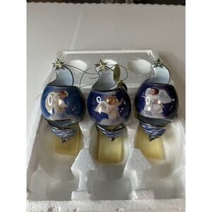 Bradford Editions Starlight Blessings Porcelain Angel Xmas Ornaments Blue