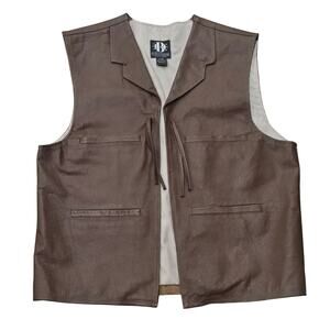 Bradford Exchange John Wayne The Duke Inspired Brown Leather Vest. Excellent preowned condition, the back has a faint mark as shown.
