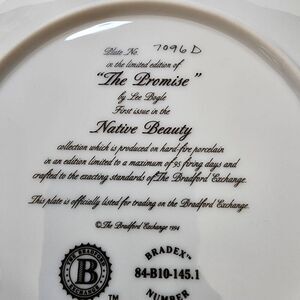 The Promise first issue in the Native Beauty collection by Lee Bogle from Bradford Exchange. Plate is 8" across