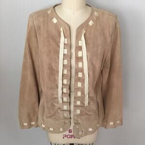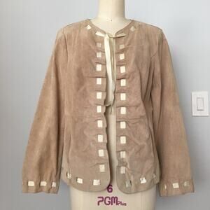 Bradley Bayou Beige Tan Genuine Suede Ribbon Trim Leather Jacket Size Medium