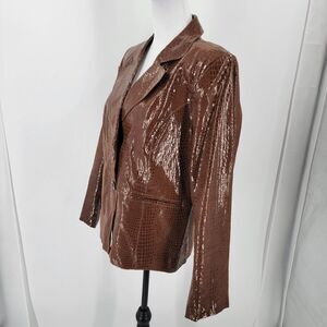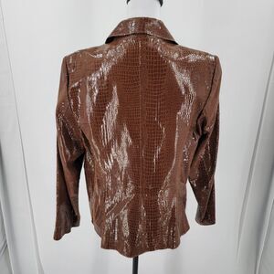 Bradley Bayou Jacket Womens Large Croc Embossed 100% Leather Pockets 2 Button Closure Brown. See Photos for Approximate Measurements.