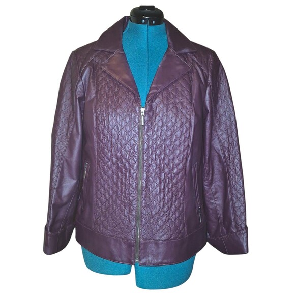 Bradley Bayou Moto Jacket Purple Leather Quilt Design Zip Pockets Lined Size L