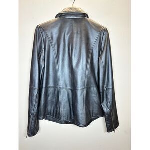 Bradley Bayou Women's Size M Black Genuine Leather Jacket Snap Closures EUC