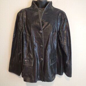 Bradley By Bradley Bayou Black Genuine Leather Jacket Embossed Texture Size 2XL