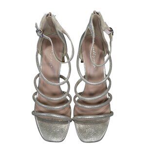 Bradshaw Metallic Silver Strappy Block Heel Sandals With Zipper Back Ankle Strap