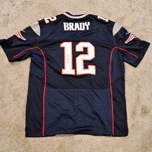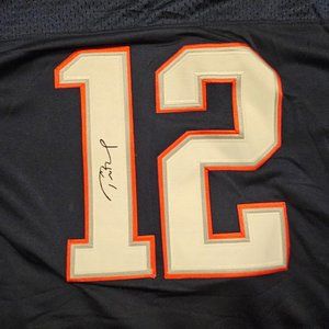 The official NFL licensed jersey is perfect for any fan and showcases the team's colors and logo. The jersey features Tom Brady's last name and number 12 on the back, with his autograph, making it a great addition to any collection.