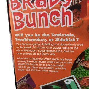 It's a hilarious game of bluffing and deduction based on the classic TV sitcom! One player takes on the role of the Bradys' housekeeper Alice, and the other players are the Brady kids. Alice tries to figure out which Brady has been causing the most trouble while everyone else passes the blame. Try to keep a straight face as you deny responsibility, point the finger, and snitch on the other players!