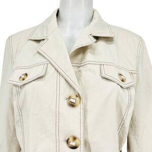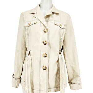 Braetan Women's Belted Lined Beige Jacket Size L Buttons Closure Collared