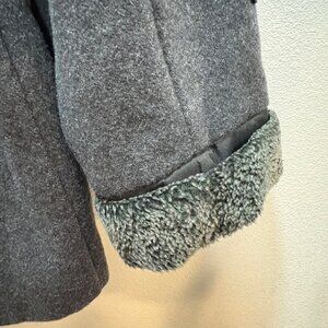 Braetan Womens Double-Breasted Wool Coat Lg Belted Waist Faux Fur Charcoal Gray