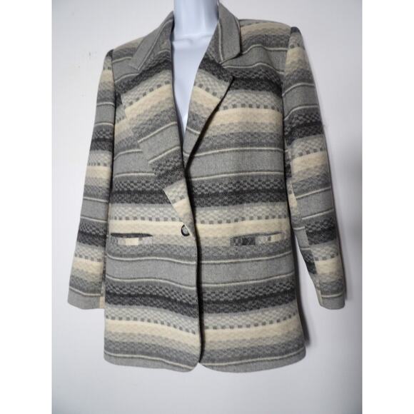 Braeton Small Wool Blazer Jacket Aztec Southwestern Gray Wool Office Career 90s