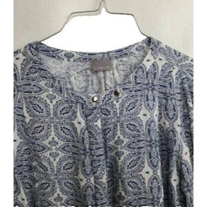 Braeve Evereve Womens BOHO Blouse Top Medium Gray Floral Peplum Long Sleeve