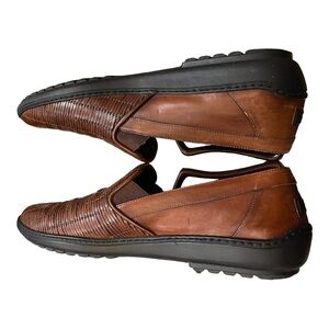 Bragano brown woven leather slip-on loafers, men's size US 10M, made in Italy. Pre-owned condition. See all photos for full details.