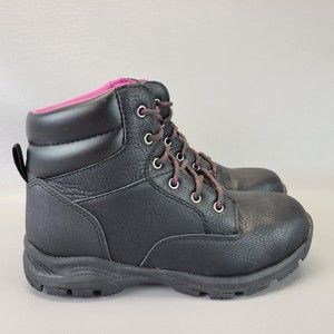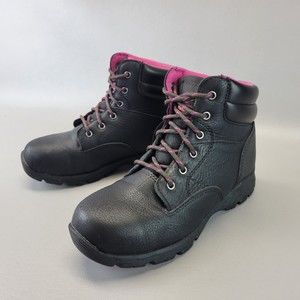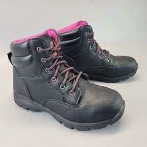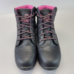 Brahma Bevel Women's 6.5M Black Pink Lace Up Steel Toe Comfort Work Ankle Boots. Good looking condition. Please see the pictures for the actual condition. Comes with what's pictured and nothing more. You are buying what is pictured and nothing more.