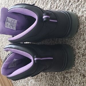 Durable black boots featuring a purple interior. Ideal for demanding tasks.