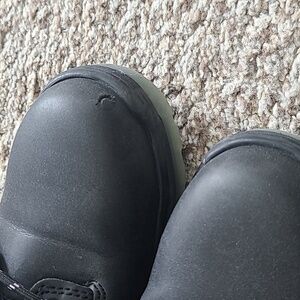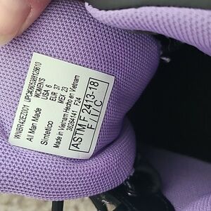 Durable black boots featuring a purple interior. Ideal for demanding tasks.